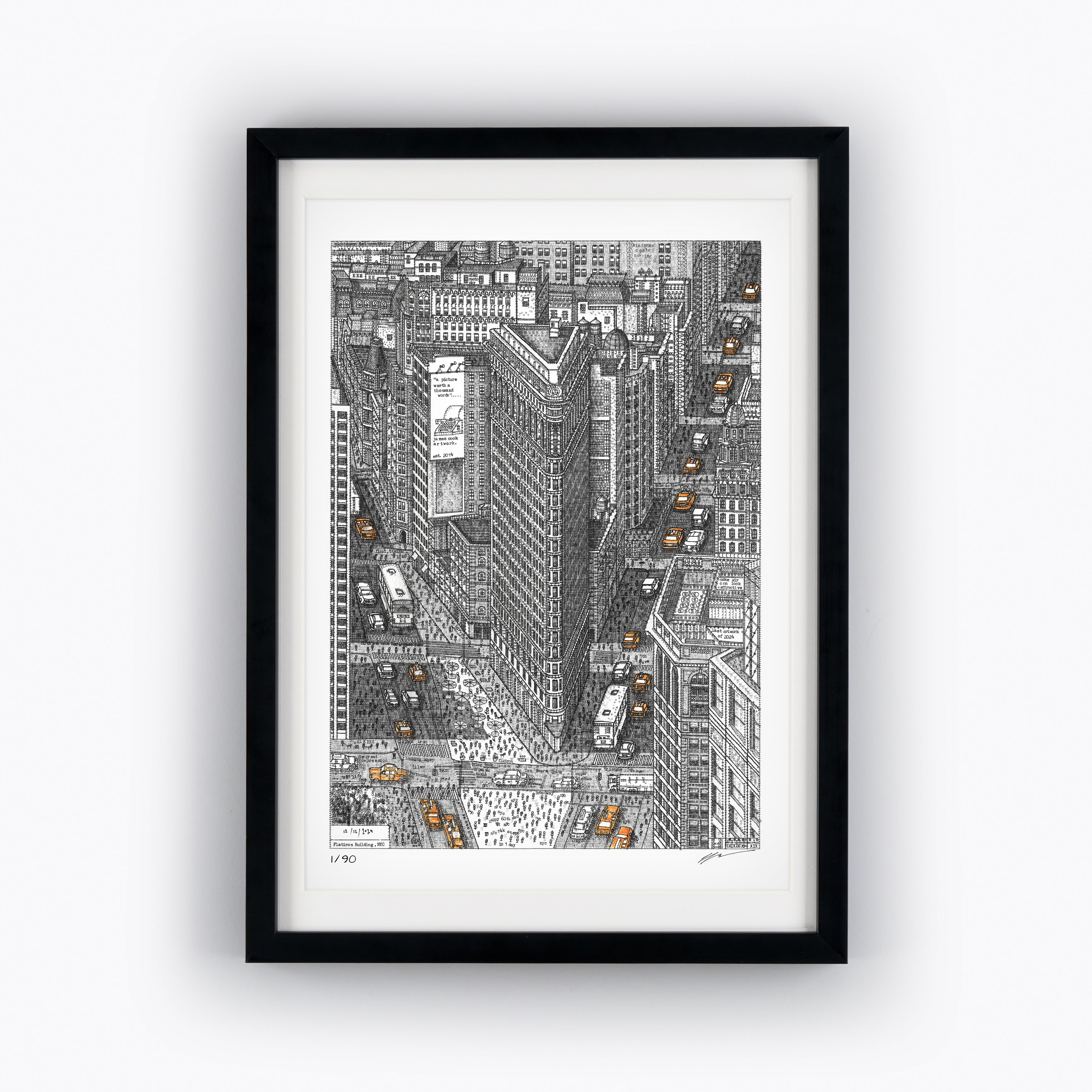 For the UK, EU, and the rest of the world (ROW), items up to 42cm on the long edge (A3 size) are sent flat in an envelope, while anything larger is shipped rolled in a tube.