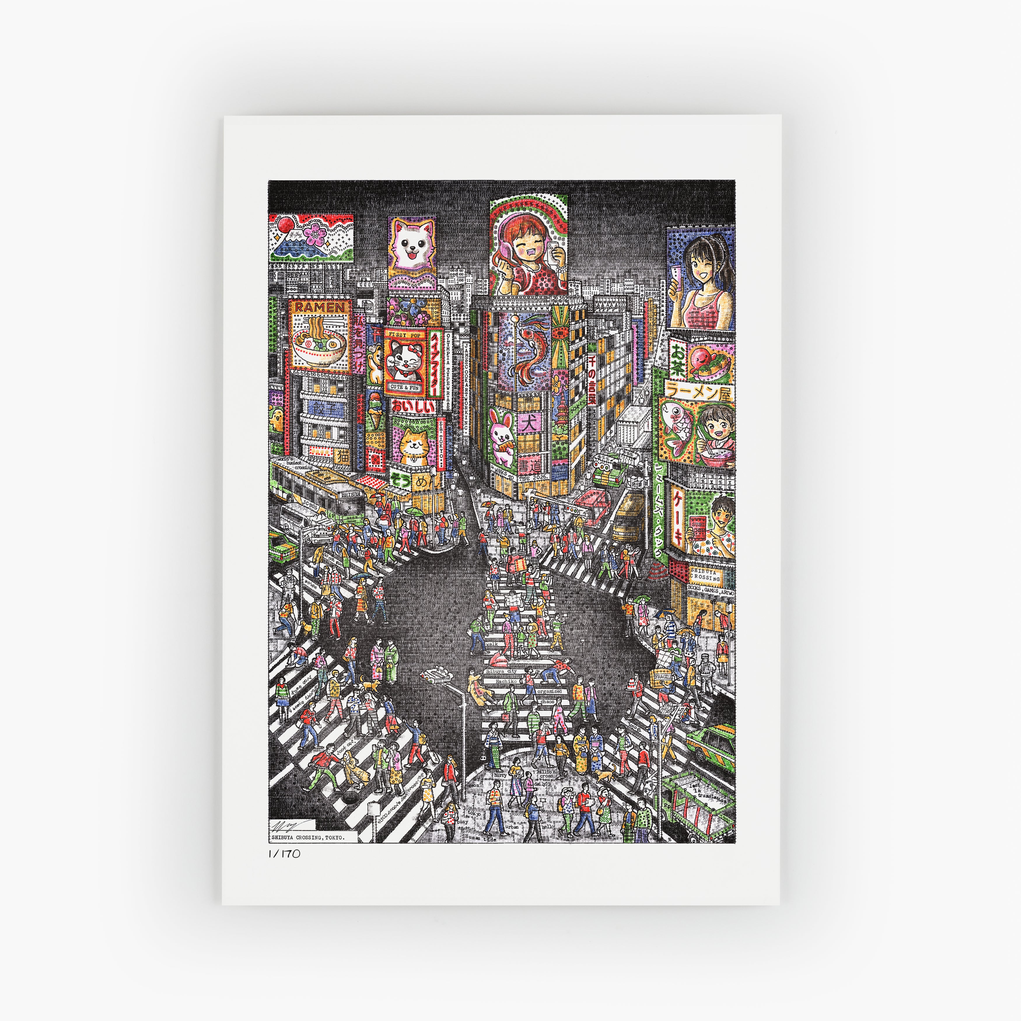 Packed with concealed messages, film references (like Lost in Translation), and authentic Japanese text, this piece invites you to discover something new every time you look. The original artwork was created at A2 size (23.4" × 16.5")."